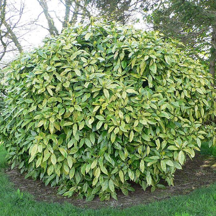 Aukuba je zimzeleni grm koji raste do 2m.