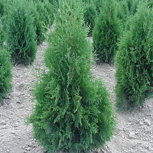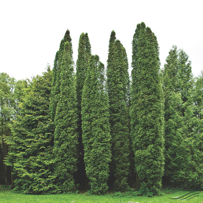 - Tuja uske, valjkaste forme, tamno-zelene boje.